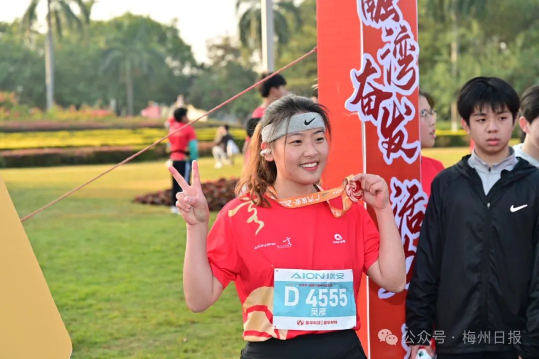 叶铭浩是来自梅州本地的跑者,他说,这是他第一次参加马拉松比赛,这次参赛的体验无以伦比,在奔跑的路上,一路都是风景,还有热情洋溢的市民们汇聚在赛道两边为选手们加油鼓劲,让参赛选手在乐享运动的同时,也感受到了梅州的生态之美、活力之美。“这场欢乐跑我感觉没什么竞技压力,目的就是和同学们相约一起找乐子、释放活力。我感觉收获的不仅是沿途的好风景、跑完的成就感,更是结识了一群同样热爱生活、热爱运动的朋友,下届‘梅马’,我还会再来!”叶铭浩兴奋地说道。