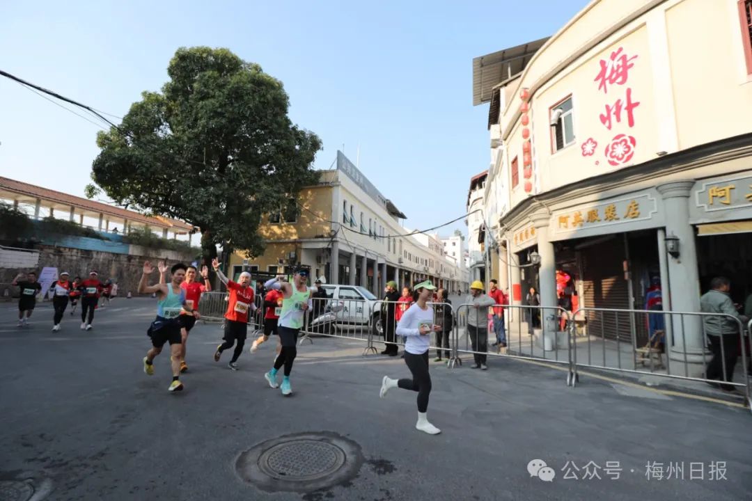 选手奔跑在干净整洁的赛道上,尽享绿美梅州和客家风情。