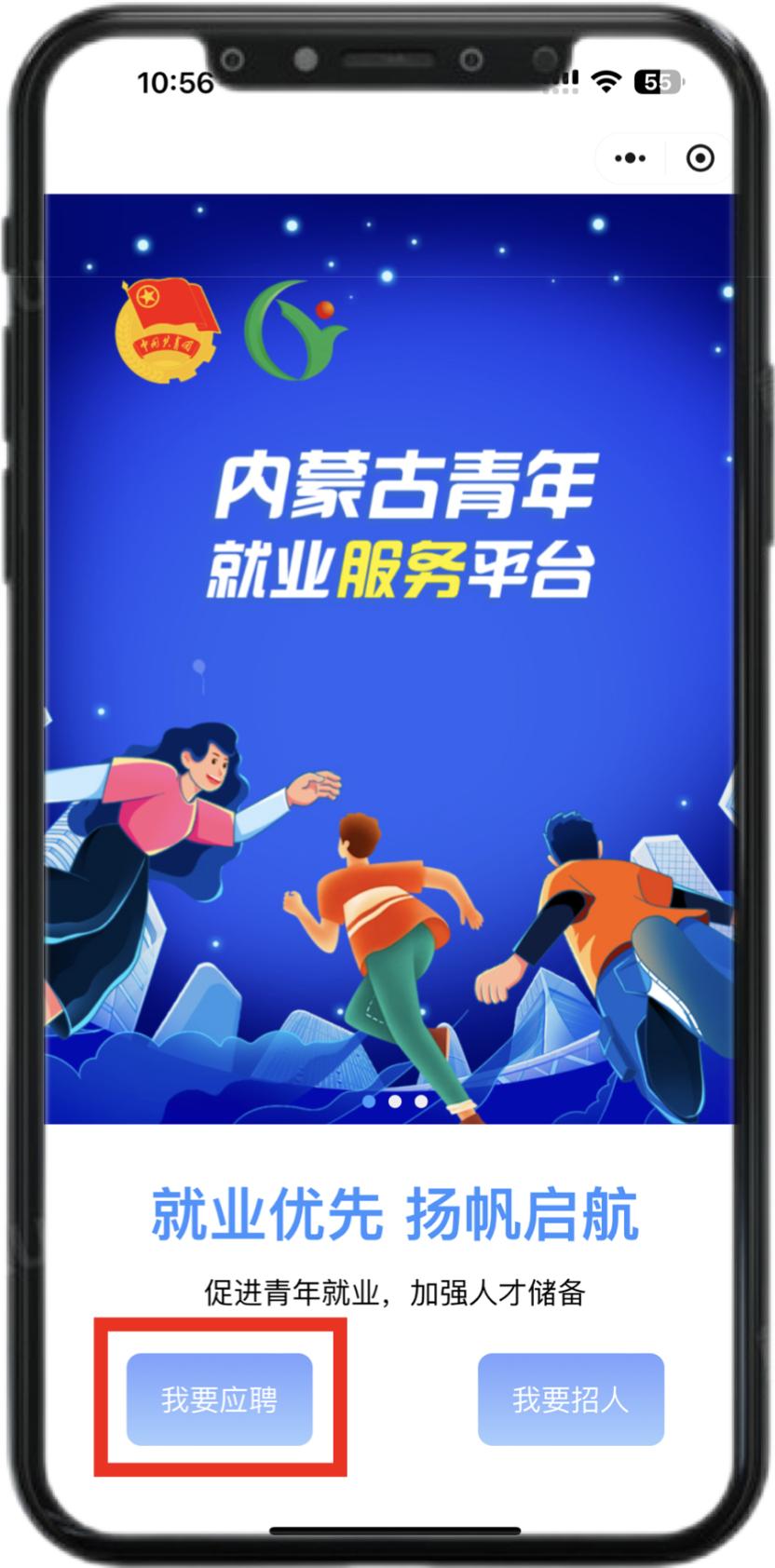 1.扫描下方二维码或通过微信小程序搜索“内蒙古青年就业服务平台”进入小程序。