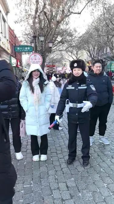 酷似景甜,在哈尔滨中央大街执勤,辅警被游客合影走红!本人回应