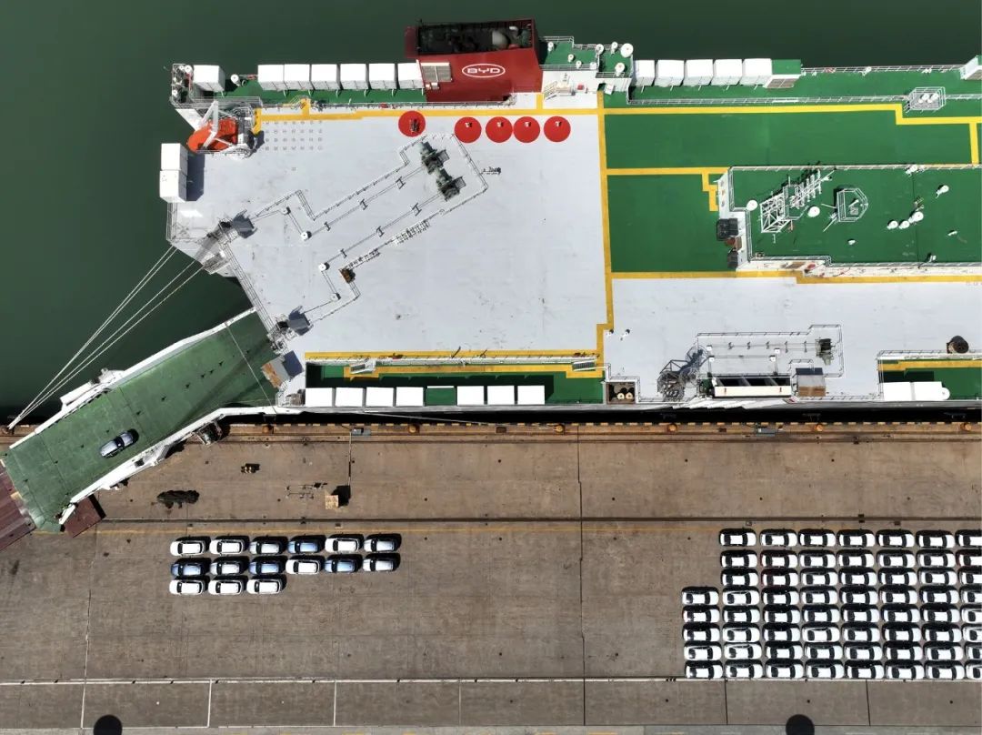 2024年4月25日,江苏连云港,2020辆比亚迪新能源汽车出口至巴西,刷新了该港新能源车单船出口纪录。“走出去”,天地宽