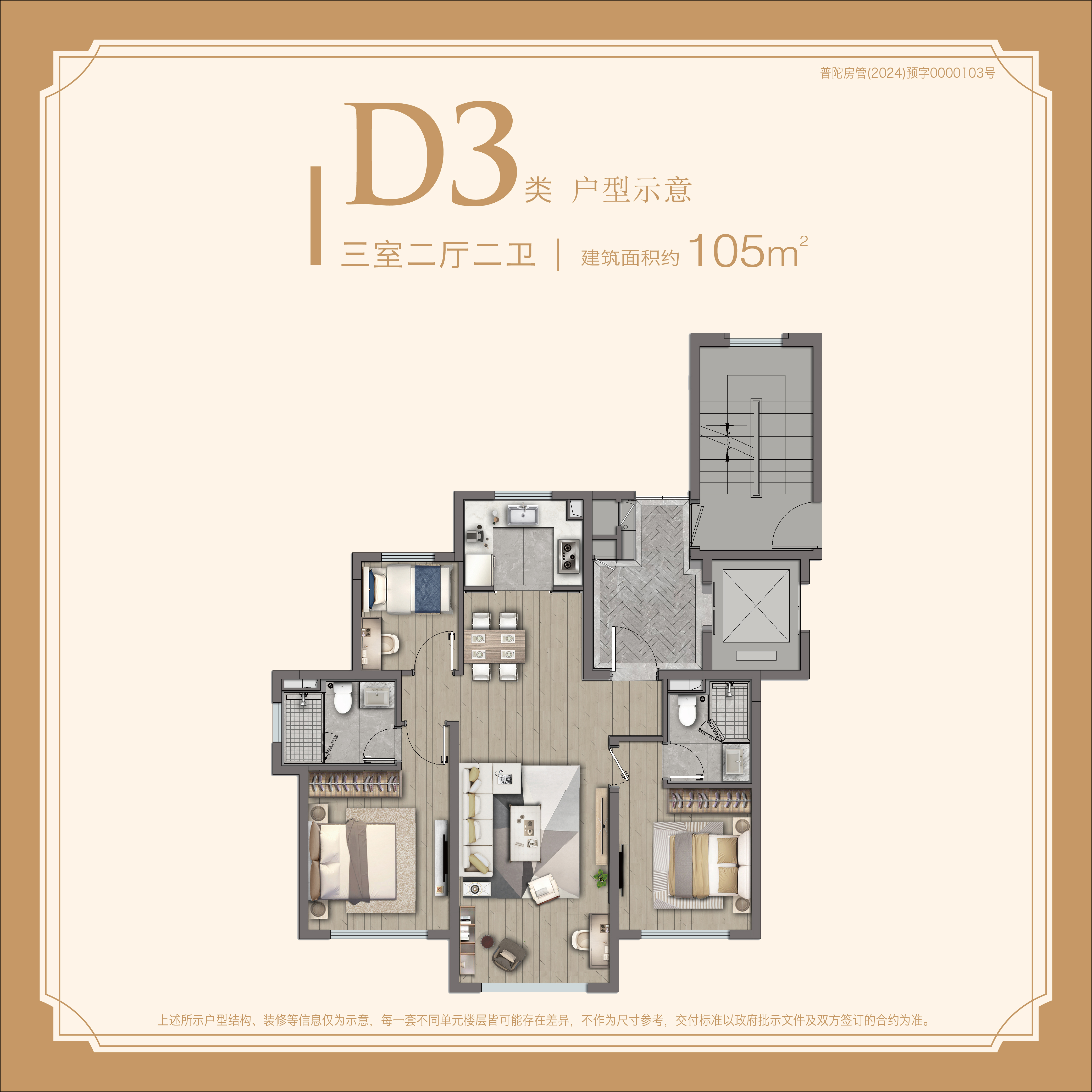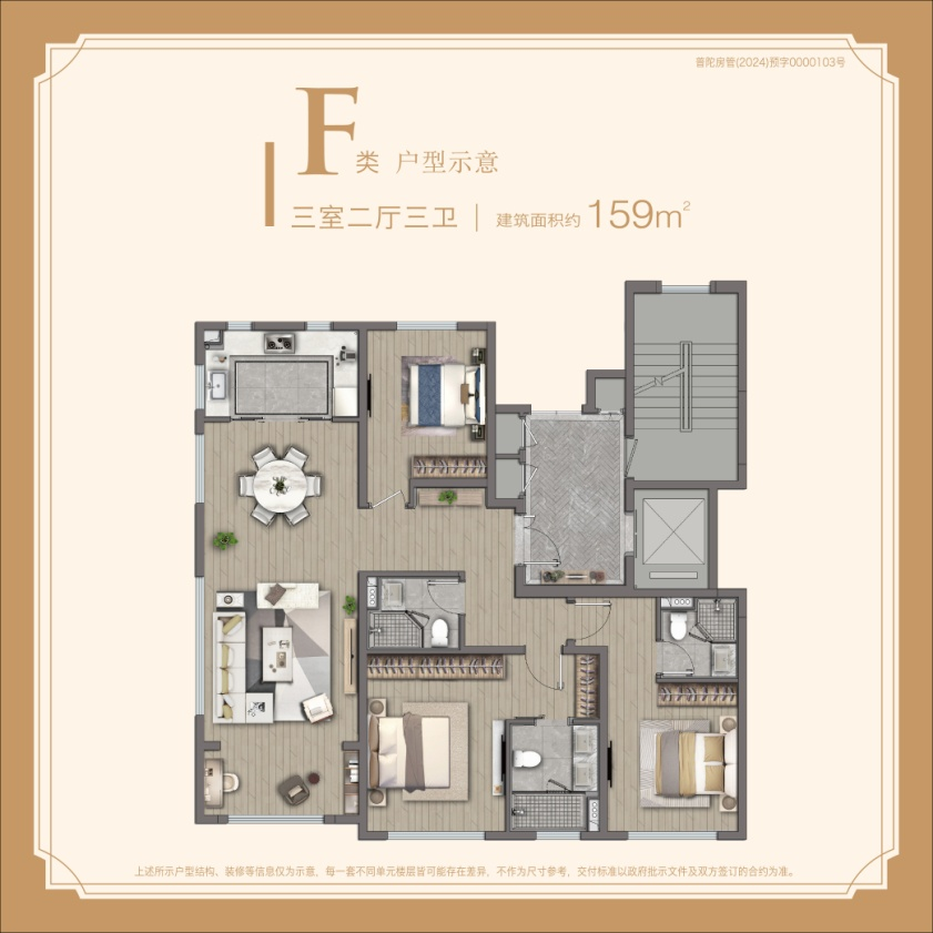 ※二至三房的舒适户型:项目推出建面约83-159㎡的二至三房,三房享双主卧套房,空间通透感极佳,注重布局、功能、采光与视野景观,将精致感与奢适融入到了日常生活里。