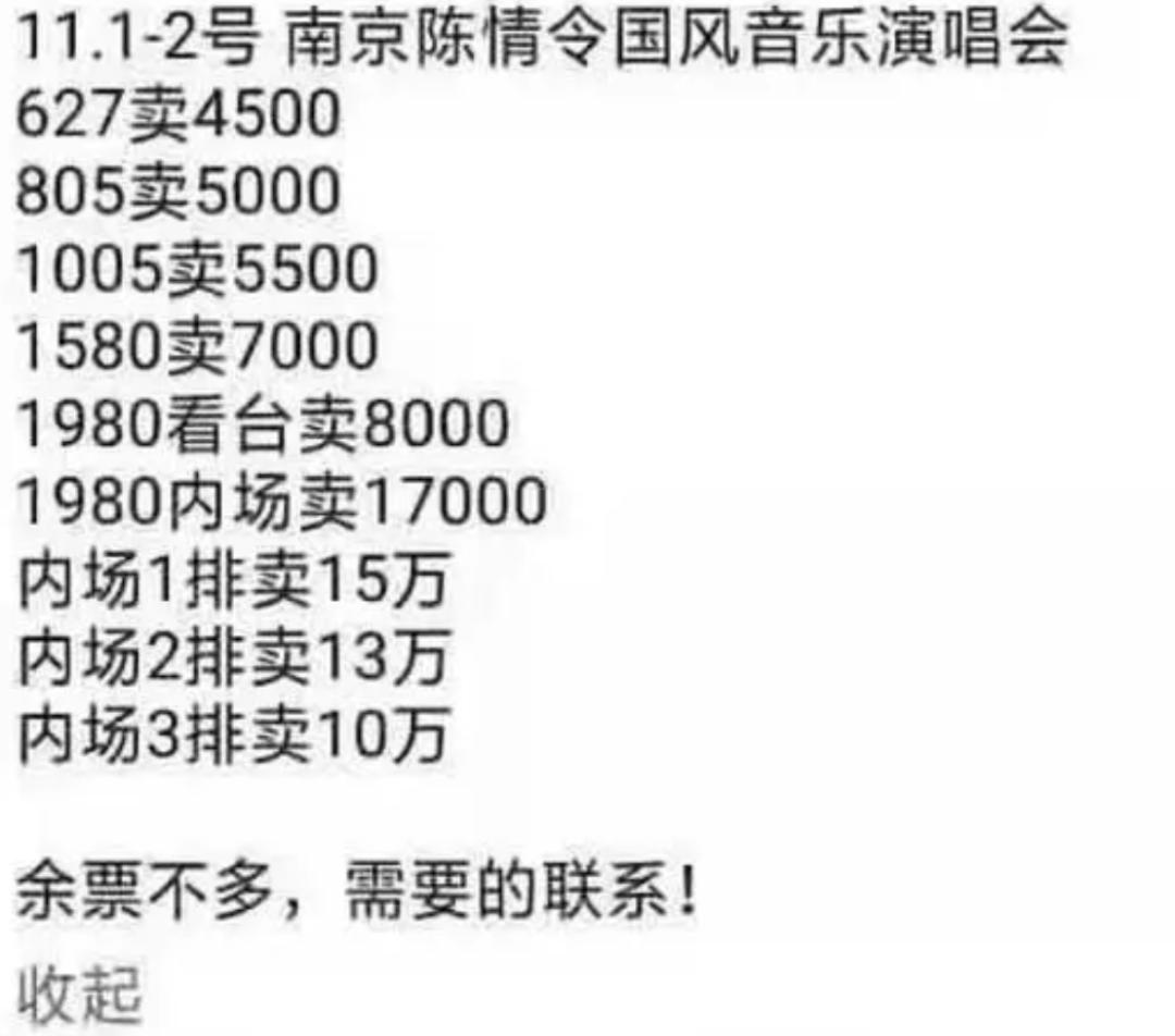 曾经《陈情令》的爆火堪称现象级,《陈情令》国风音乐演唱会,至今依然被网友们称为售后 “天花板”。2019年,南京场演唱会,内场一排的黄牛票价甚至被炒到15万,1980内场票几乎翻了10倍出售,粉丝纷纷吐槽“这些黄牛是疯了吗?”。于是许多粉丝选择在线上看直播,腾讯视频独家高清付费直播,会员价30元、非会员50元,即使不能到现场,也能在屏幕前获得同频的快乐。