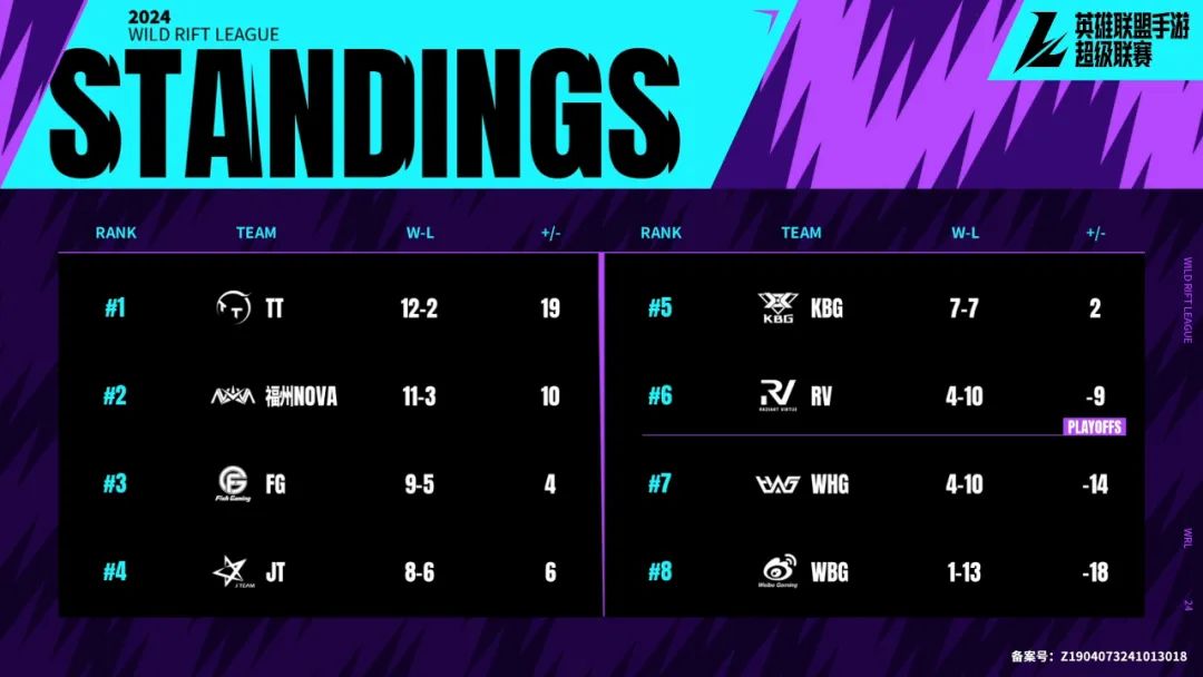 2024英雄联盟手游超级联赛冬季赛火热进行中。目前,职业赛道晋级季后赛的六家俱乐部已经确定下来,它们是TT、福州NOVA、 JT、FG、KBG、RV。