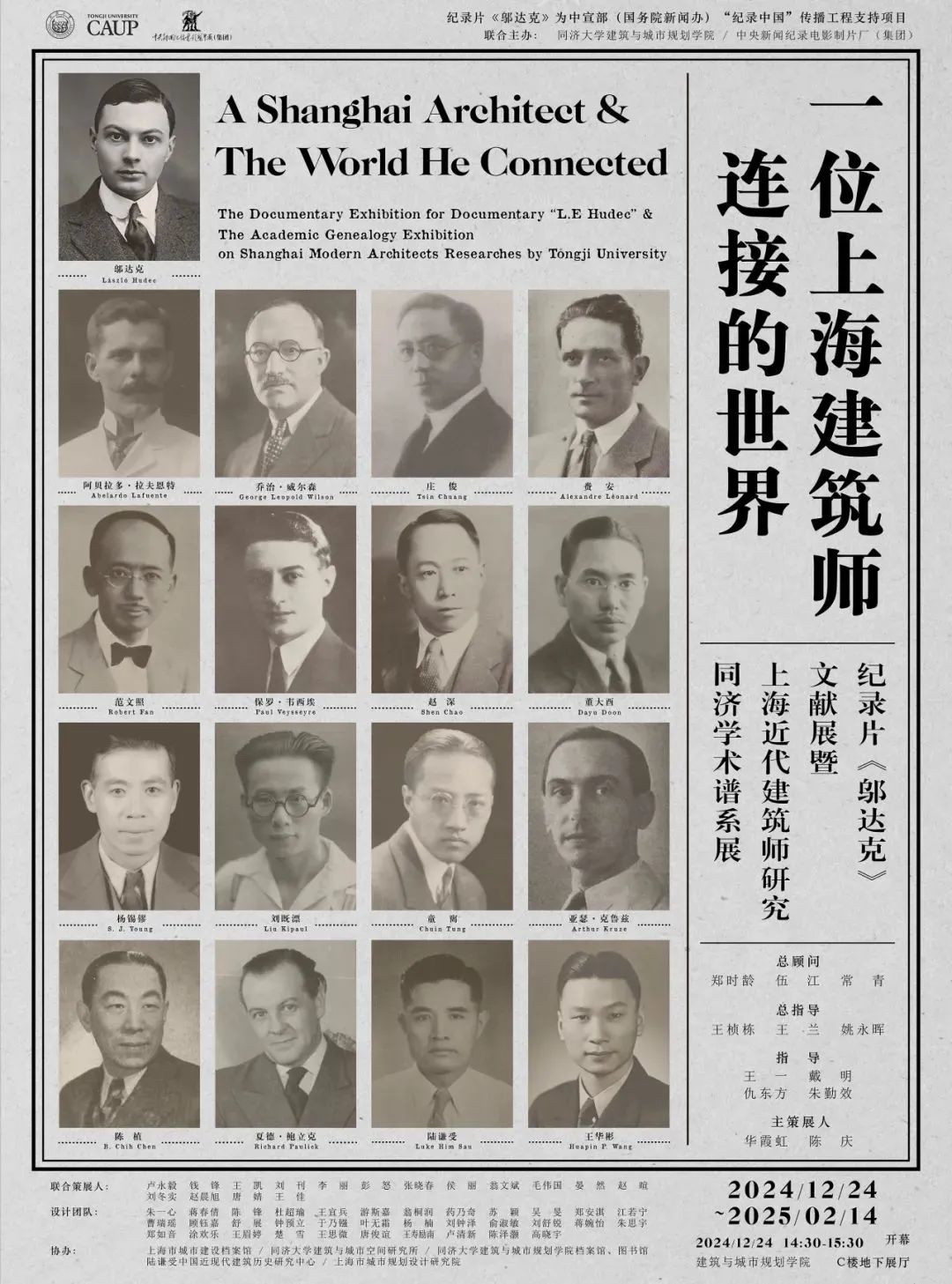 《一位上海建筑师连接的世界:纪录片〈邬达克〉文献展暨上海近代建筑师研究同济学术谱系展》在同济大学建筑与城市规划学院正式开幕啦!本次展览包含《纪录片〈邬达克〉文献展》和《上海近代建筑师研究同济学术谱系展》两大部分。前者主要展示中宣部(国务院新闻办)“纪录中国”传播工程支持项目——五集纪录片《邬达克》跨越三大洲、历时三年的拍摄过程,从各国采集的丰富档案和访谈素材;后者主要展示同济大学从1950年代末参与全国建筑“三史(古代、近代、现代建筑历史)调查”开始至今在上海近代建筑历史方向数十年的研究积累和学术传承。展览由同济大学建筑与城市规划学院教授,也是纪录片《邬达克》的学术顾问之一华霞虹和纪录片《邬达克》总导演,中央新闻纪录电影制片厂(集团)陈庆女士合作担任主策展人。