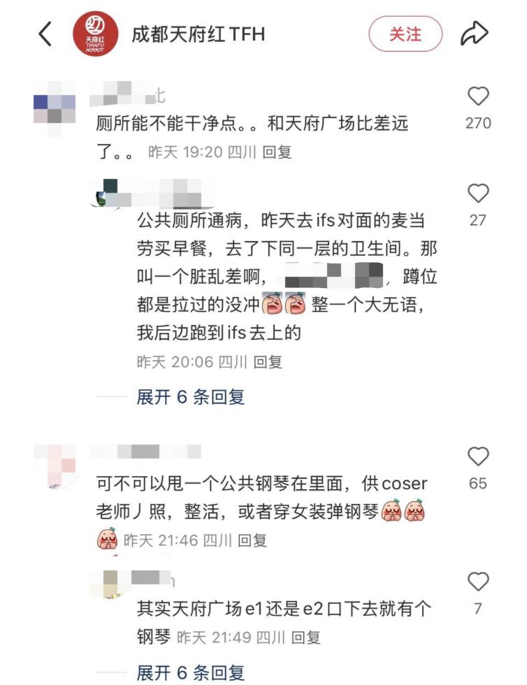 微成都记者注意到,在前述更换运营商的留言中,厕所不够干净、不通风等问题,需要便利店、饮品店等需求被多次提及。