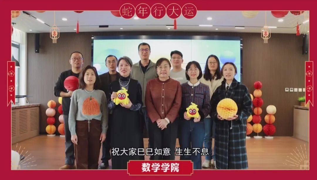 亲爱的老师们同学们,在这辞旧迎新的美好时刻,我代表数学学院向大家致以最热烈的新年祝福。祝大家巳巳如意,生生不息,新年快乐!祝学校130周年生日快乐!