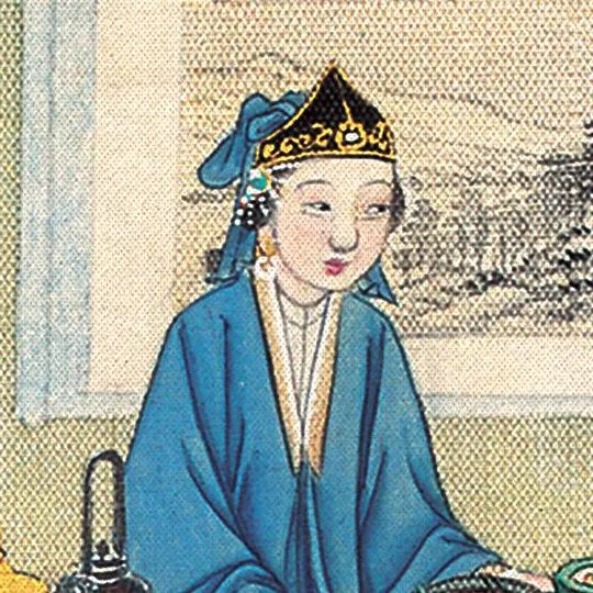 抹额,是中国古代的一种首服,是将布帛织锦等物折叠或裁制成条状围勒于额前,多饰以刺绣或珠玉。这种抹额多为传统妇女的重要装饰物,在孙温的画册之中,除宝玉外,贾母、李纨、王夫人等女性头上也出现过抹额。