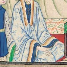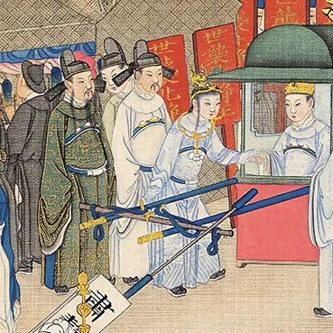 观察画册可以发现区别于常服,官员所穿着的服装为圆领大袖的衮袍,佩戴蹀躞带,这种蹀躞带起源于战国时期,唐代规定“大带制度”,以带上的装饰品质地和数量区别官品等级。蹀躞带仅有皇家人员和官员可以佩戴,其中镶嵌以金属或玉纹饰象征品阶。