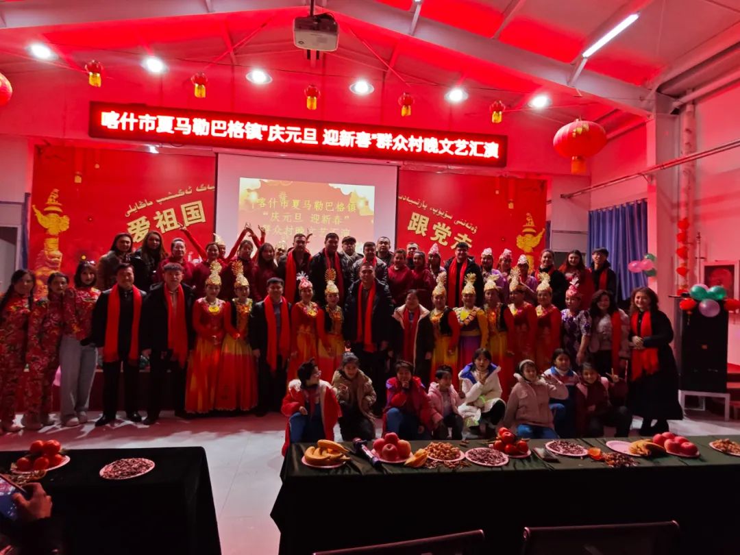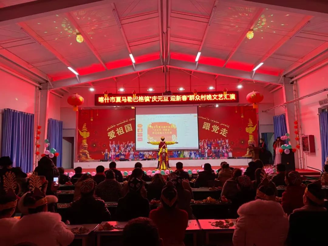 夏马勒巴格镇12月30日,喀什市夏马勒巴格镇举办“庆元旦 迎新春”群众村晚文艺晚会,丰富群众文化生活,营造欢乐祥和的节日氛围。