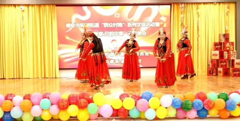 学府街道12月30日,学府街道同喀什经济开发区城东中心党委、喀什市中等职业技术学校共同举办“龙蛇起舞贺新春 学社共筑一家亲”暨群众村晚系列展演活动。全场歌声嘹亮,喜庆的装饰随处可见,欢声笑语不绝于耳。