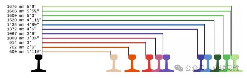 全球轨距示意图相较于标准轨距,更宽的轨距被称为“宽轨”,约占全球铁路的23%,例如俄罗斯的轨距就是1520毫米的“宽轨”;更窄的轨距则被称为“窄轨”,约占全球铁路的16%,越南的“米轨”就是轨距为1000毫米的“窄轨”。