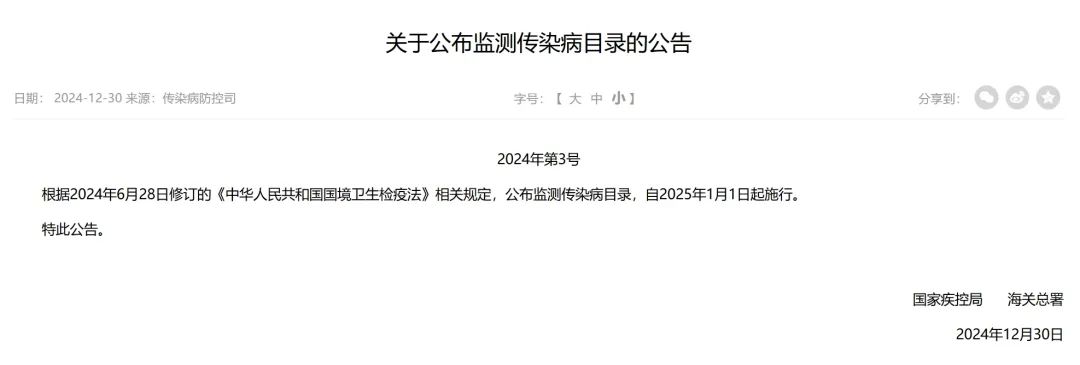 你知道吗?从昨日(2025年1月1日)起,我国将正式实施新的《检疫和监测传染病目录》。这不仅是对公众健康的守护,也是在全球疫情形势下的必要防线。那么,这份新目录到底列出了哪些传染病?为什么它们如此重要?今天,就带你一次性搞清楚。