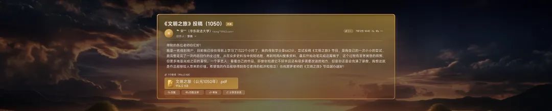 《文明》节目播出到大约第20期的时候,我们收到了一封邮件,来自上海华东政法大学的小宋同学。他说,我很喜欢你们的节目,现在模仿《文明》的风格,写了一期节目,设定在公元1050年,给你看看。