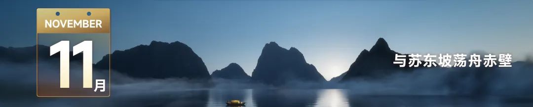 到了11月,那个时候,我的《文明》会讲到1082年。当时,苏东坡正在赤壁写《赤壁赋》和《念奴娇·赤壁怀古》。我也会前往黄州赤壁,在那儿做一场直播,和大家怀怀古,聊聊苏东坡。