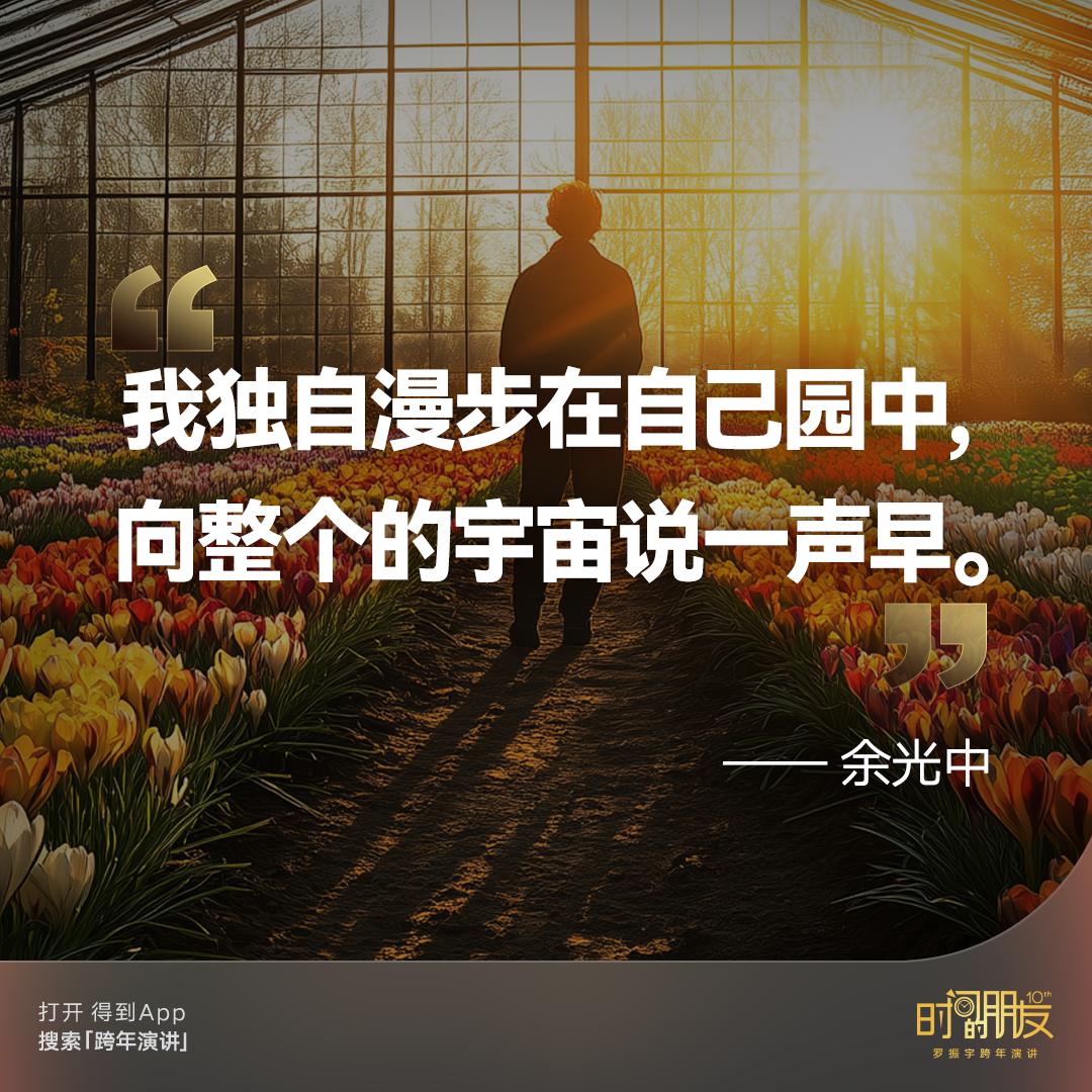 有一句话,最能表达我们此刻的心情,是余光中的一句诗:“我独自漫步在自己园中,向整个的宇宙说一声,早。”