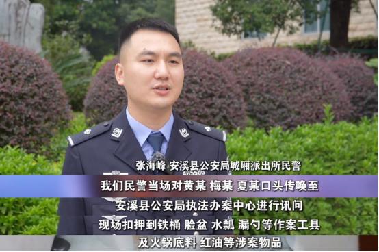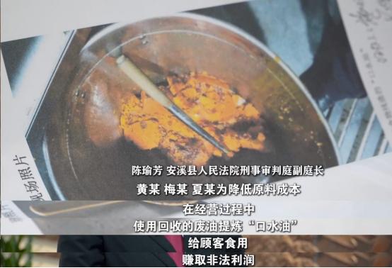 安溪县公安局城厢派出所的民警张海峰介绍,2017年6月,他们到这家火锅店检查,发现有疑似“口水油”的红油,经查发现黄某、梅某、夏某等人涉嫌将顾客食用后剩下的餐厨垃圾、油等进行二次加工、过滤后,再循环上桌供顾客食用。