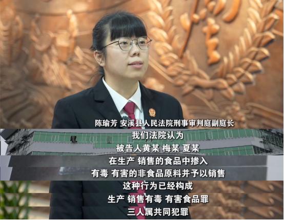 庭审中,三名被告人对犯罪事实供认不讳。安溪县人民法院刑事审判庭副庭长陈瑜芳表示,在共同犯罪中,被告人黄某、梅某系主犯,依法按照其所参与的全部犯罪处罚,被告人夏某起次要作用,是从犯,予以从轻处罚。