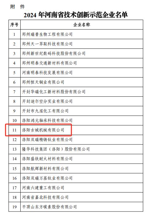 洛阳古城机械有限公司榜上有名