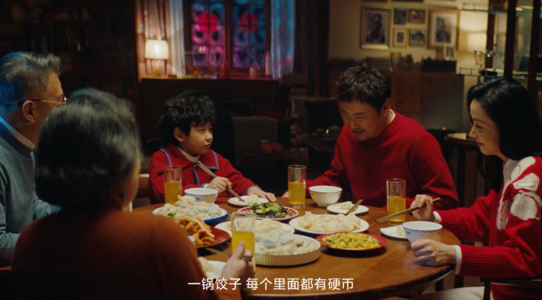 其次,年味是一种吉祥的寓意。老沈家的年夜饭,必不可少的就是饺子。传统习俗里,人们会在一锅饺子里包入几个带着硬币的饺子,吃到的人会在来年得到财神的眷顾,邂逅一年的好运。