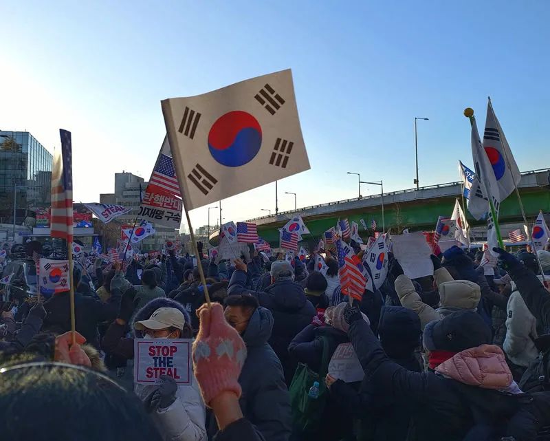 《纽约时报》1月4日报道指出,自去年12月韩国上演戒严闹剧以来,尽管多数韩国民众希望总统尹锡悦下台,但一批右翼人士正在用阴谋论来团结尹锡悦的支持者,他们决心保护尹锡悦免于被起诉和逮捕。不少外媒注意到,尹锡悦支持者经常会挥舞美国国旗,使用“停止偷窃”(Stop the Steal)等特朗普支持者所使用的口号。还有人戴上了印有“让美国再次伟大”标语的帽子。