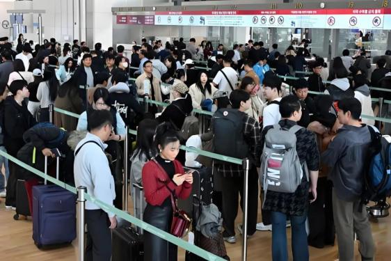 仁川机场挤满排队赴中国的游客。韩国人用实际行动证明了,与其在社交平台高唱反调,不如亲自去中国一探究竟。