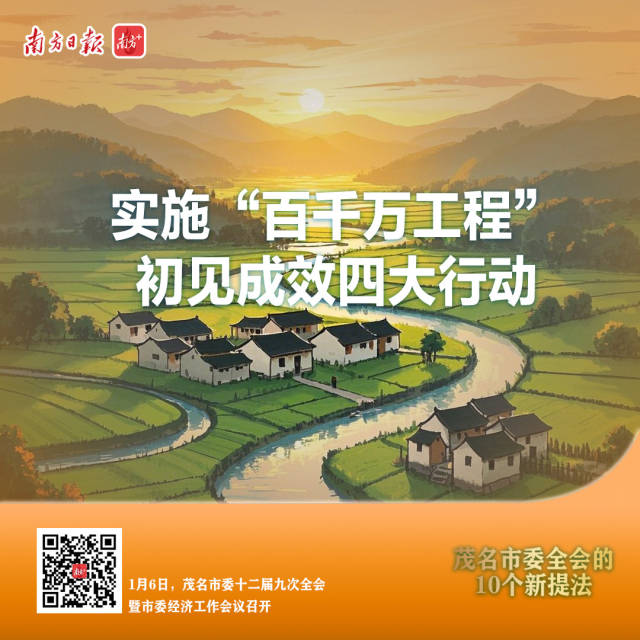 今年是“百县千镇万村高质量发展工程”实现“三年初见成效”目标的重要节点。四大行动包括:县域产业补强行动、城镇化提升行动、乡村振兴提质行动、社会力量赋能行动。茂名将建立“年初晒账本、年中晒工地、年底晒成效”推进机制,推动见力度、见变化、见亮点、见后劲。