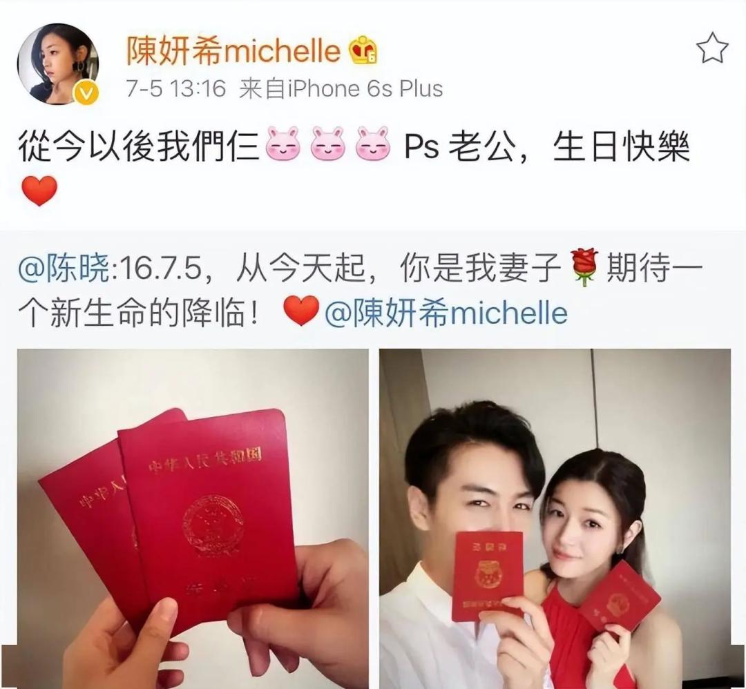 另一对频繁被离婚传闻推上风口浪尖的,则是陈晓与陈妍希。