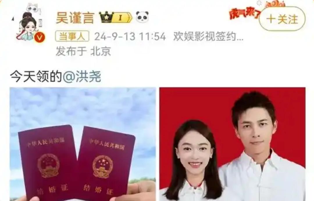 吴谨言官宣结婚当然,也并非只有女明星拥有这种困境,男明星也不可避免,前段时间官宣恋爱的黄晓明便是佐证。