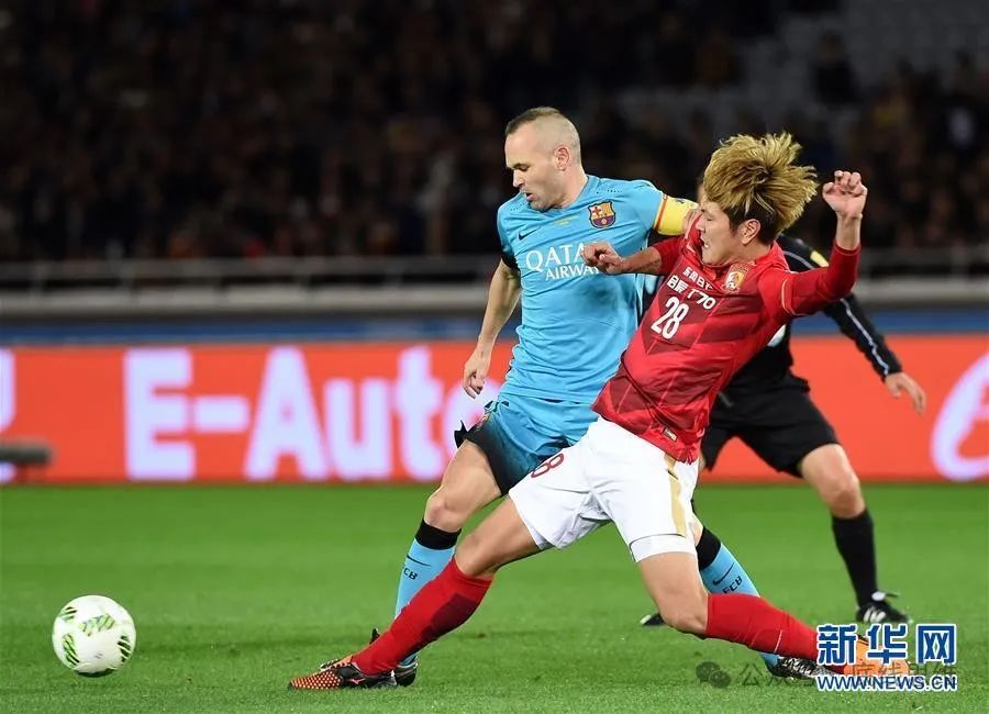 2015年12月17日,广州恒大队球员金英权和巴塞罗那队球员安德烈斯·伊涅斯塔(左)在比赛中拼抢。新华网倘若严格按照中国足协的准入规则,早在2023赛季,开始前仅集训20天又卖出了韦世豪、严鼎皓、杨立瑜等国脚的广州队,似乎已无法避免降级甚至消失的命运。但俱乐部自内而外积极自救,让“死刑”变成了“死缓”。