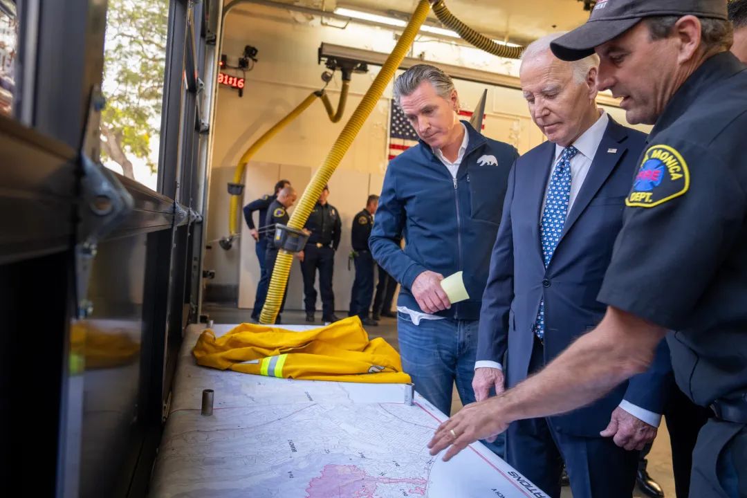 加州州长纽森7日晚宣布加州南部部分区域进入紧急状态。纽森8日在社交媒体发文称,加州已部署1400余名消防人员参与灭火。他还派遣国民警卫队前往协助。美国总统拜登8日签署了针对加州山火的联邦紧急声明,将向加州提供资金和相应资源用于灭火工作。美国白宫发言人当天晚间发表声明说,美国总统拜登取消原定9日至12日访问意大利的行程,继续集中精力指挥联邦政府应对加利福尼亚州野火,他到访加州,在加州州长纽森陪同下,听取加州消防部门的报告。美国联邦政府派遣了十余架飞机及直升机参与救援。美国森林服务局也预备了数十辆消防车,将根据需要部署。拜登还指示美国防部提供额外的援助。