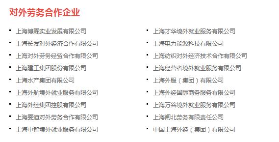 官方公布的上海对外劳务合作企业。截图来源:商务部官方网站2.各国劳务派遣政策存在差异,具体求职政策可以通过相关国家大使馆或官方网站进行求证。