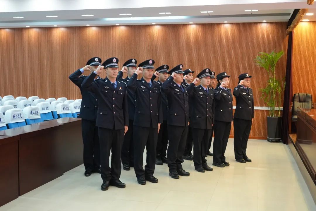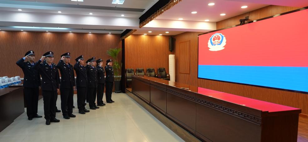 在庄严的警旗下,嫩江市人民法院的司法警察们身着制服,神情肃穆,举起右手,铿锵有力地宣读着誓词:“我是中国人民警察,我宣誓:坚决拥护中国共产党的绝对领导,矢志献身崇高的人民司法事业,对党忠诚、服务人民、执法公正、纪律严明,为捍卫政治安全、维护社会安定、保障人民安宁而英勇奋斗!”这不仅是对职责的承诺,更是对信仰的坚守。每一个字句都凝聚着他们对法律的尊重和对职责的忠诚,体现了他们为社会正义所承担的使命和责任。
