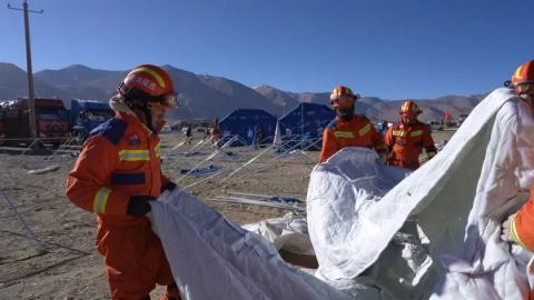 无畏艰难、心系民众的铁血战士——噶玛达杰。在安置现场,在特勤二站三级消防士噶玛达杰忙碌而坚定的身影无处不在,他不顾疲惫,搭建起一座座承载着希望的救灾帐篷,搬卸着一批又一批的救援物资,从救援物资的分发到临时住所的建立,每一步都凝聚着他对受灾群众深深的关怀与责任。他的目标只有一个,那就是让每一个受灾群众得到最及时、最周到的安置,让温暖与安心伴随他们渡过难关。他,用实际行动诠释了“妥善安置受灾群众,确保安全温暖过冬”。