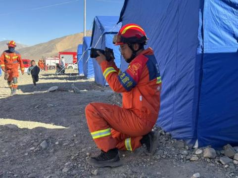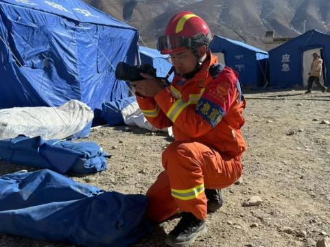 随警出动、掌镜记录的幕后英雄——边巴欧珠。作为拉萨支队全媒体中心的骨干,他总是身背摄像设备,紧随救援队伍的脚步。在救援现场,他不仅是一位记录者,更是战斗精神的传递者。穿梭在废墟之间的搜救队员身影,全力解救被困人员的瞬间,搜救犬扑进废墟的时刻,都被他精准地定格和记录。