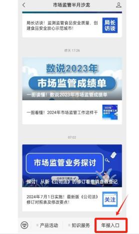 关注“宝鸡市场监管”微信公众号,点击下方菜单栏【年报入口】即可年报。