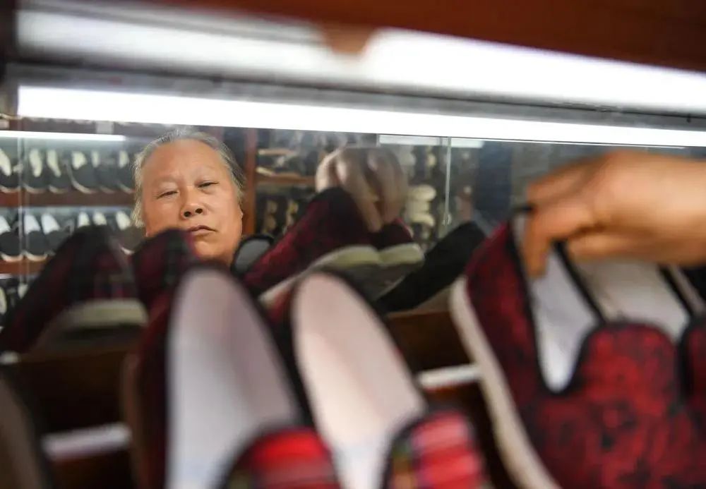 2018年入选省级非物质文化遗产代表性项目。沿用纯棉白布纳底进行“六刷六剪”的毛边处理,遵循独特的“托里托面”“三翻口”等技法,“内绱”和“叠跟”等工艺,有三十二道传统工序。1993年,制鞋厂为邓小平同志定制唐昌布鞋,被邓小平同志亲切地称为“家乡布鞋”。
