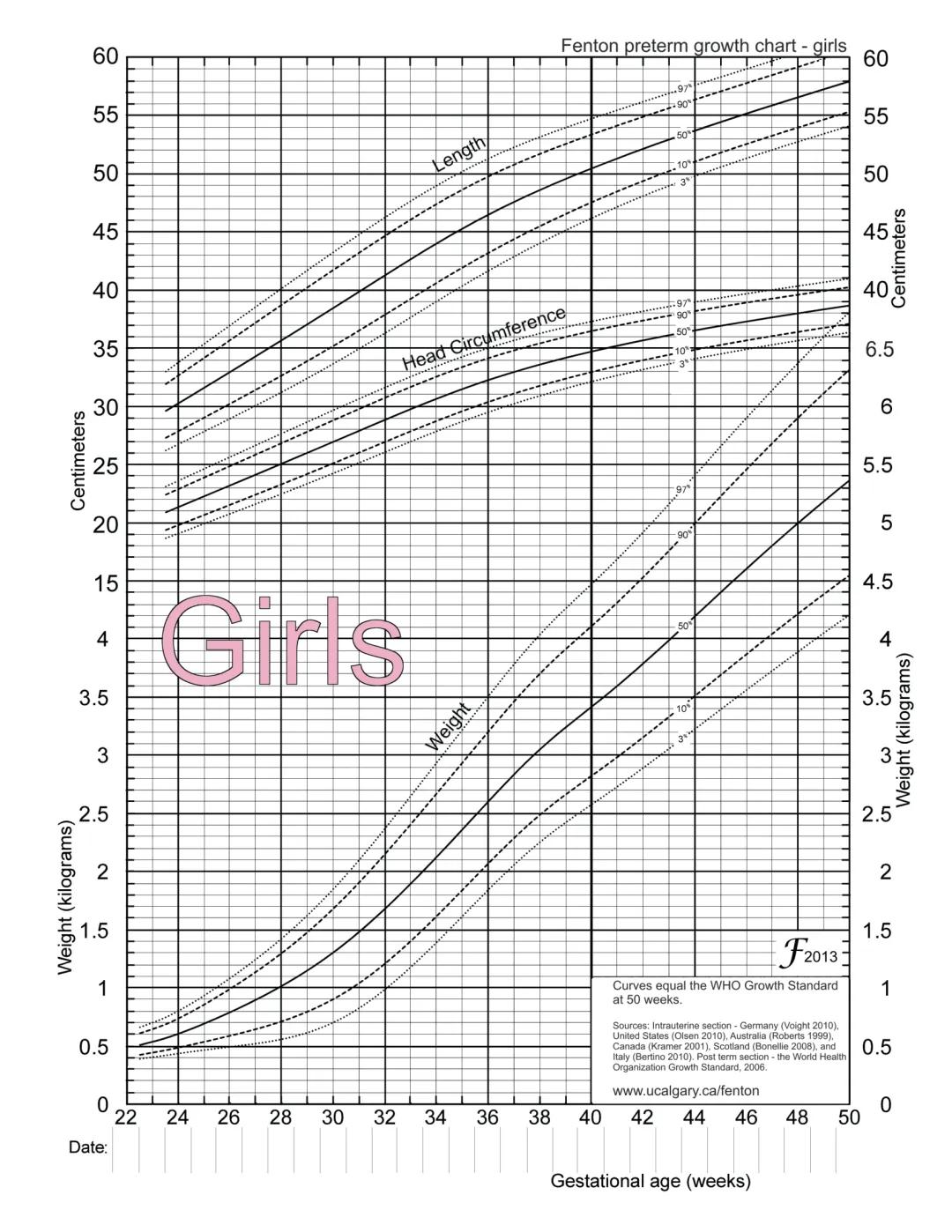 先使用Fenton曲线,等到宝宝纠正足月(40周)后4-8周,就可以按照纠正月龄来使用WHO的生长曲线了