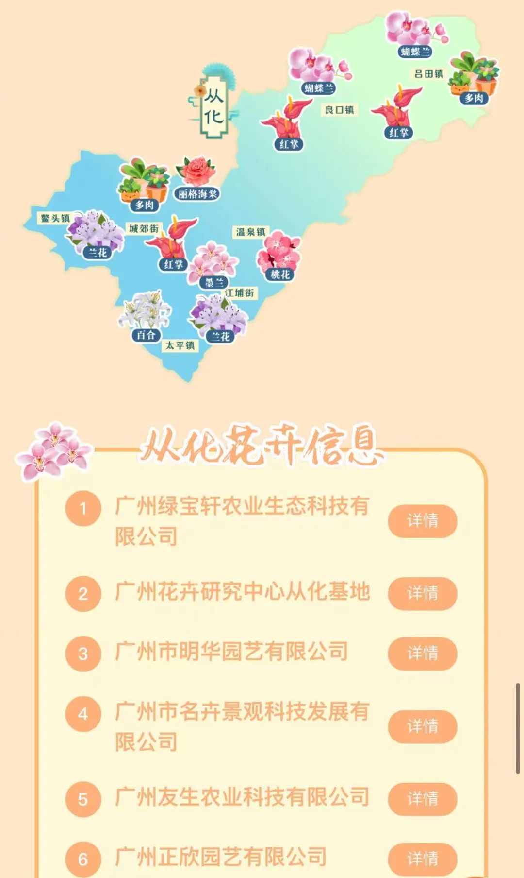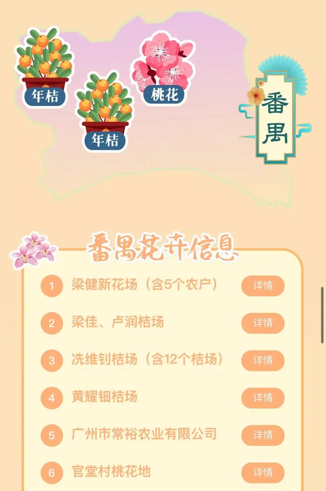 为进一步促进年花销售,让全国花卉采购商以及广大市民更便捷买到自己心仪的年花,今年市农业农村局继续策划推出了集实用性、趣味性、互动性于一体的广州年花藏宝图,“涵盖广州8个花卉主产区的162家花卉种植户及企业。”
