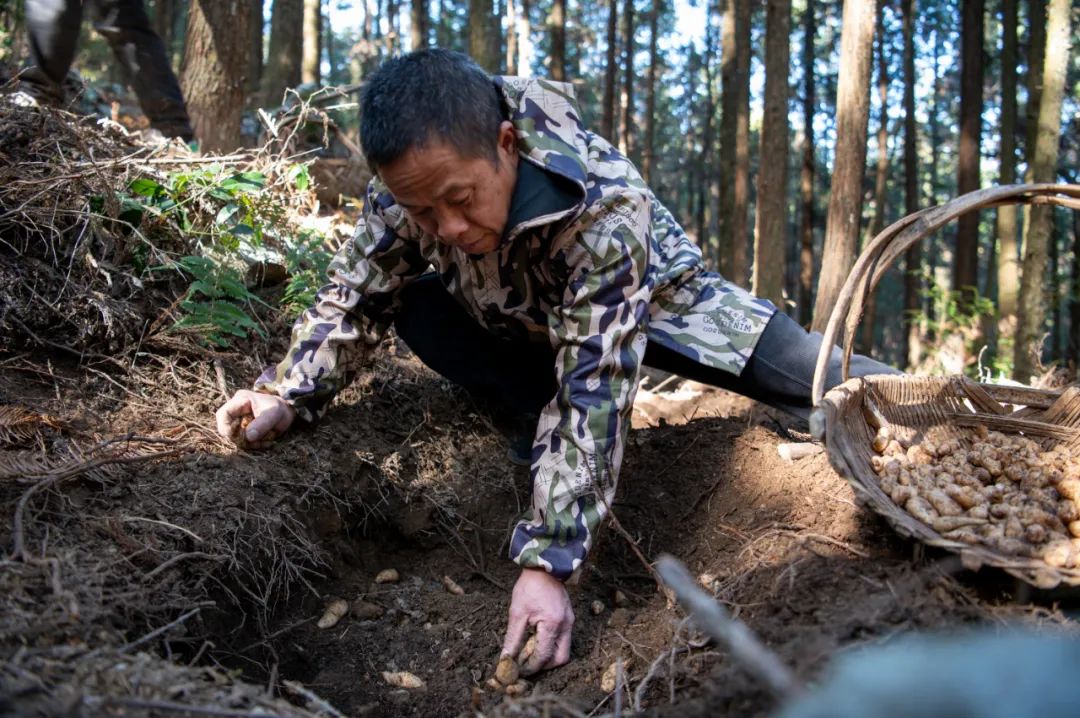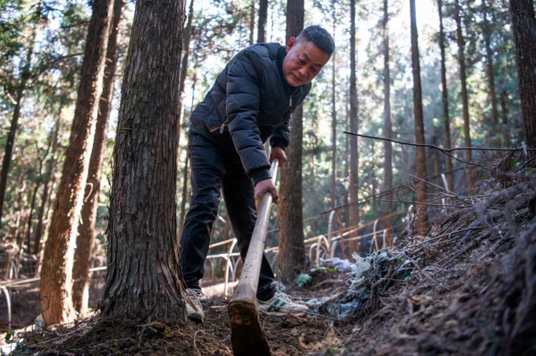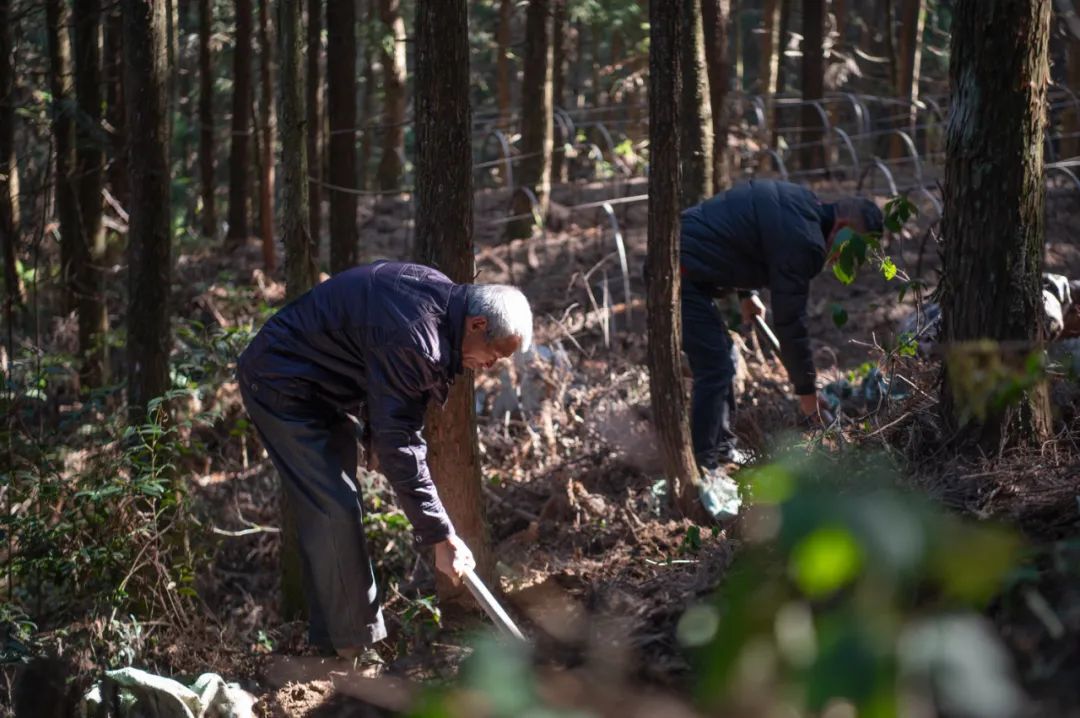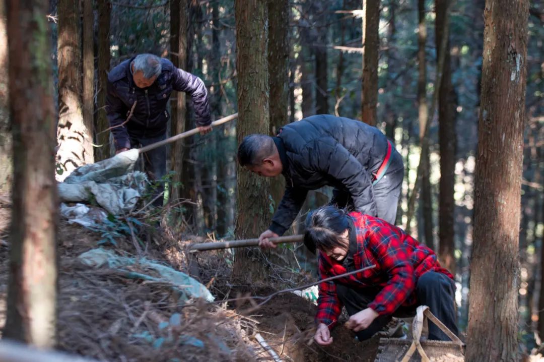 ▲ 在铜铃山镇石垟林场的林下天麻种植基地,只见一排排整齐划一的树木下,种植户们正忙碌地穿梭其间。他们有的拿着锄头挖深浅适中的小坑,精心打造一个个适宜天麻生长的小环境,有的蹲着身子小心翼翼地将天麻的种子或块茎放入坑中,再轻轻覆盖上一层薄土,期待着在新的一年里茁壮成长。