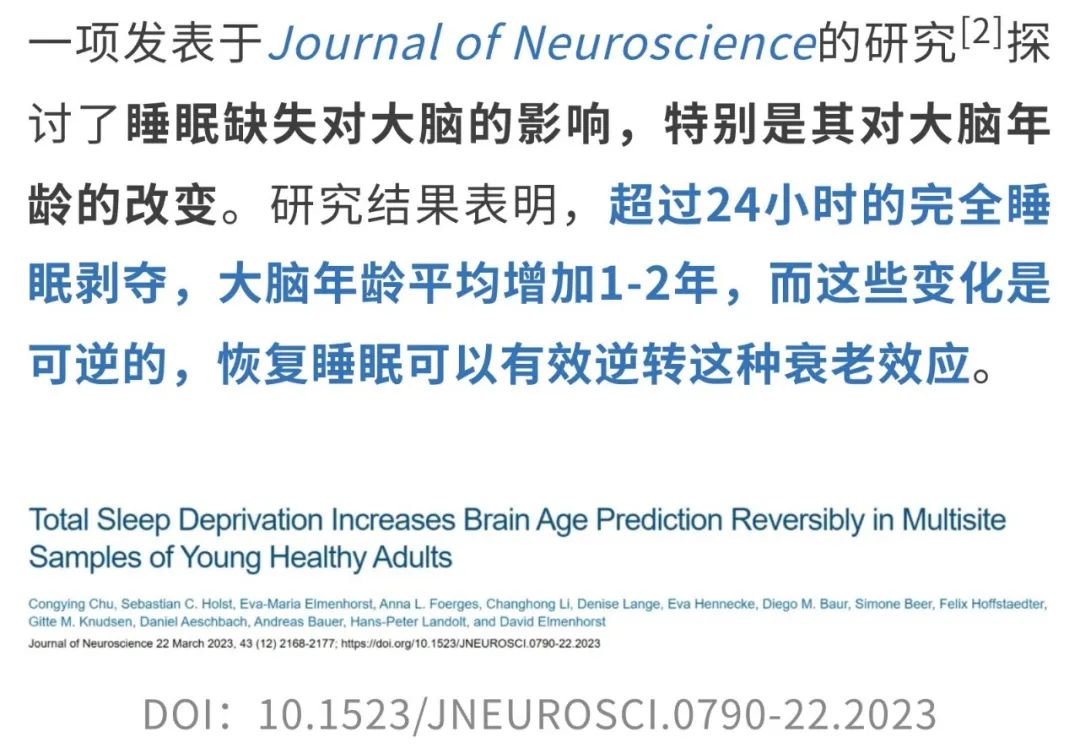 不过,研究也观察到慢性或部分睡眠剥夺未发现显著的脑龄变化。既然睡眠剥夺会让大脑变老,那么恢复睡眠是否能够“修复”大脑呢?
