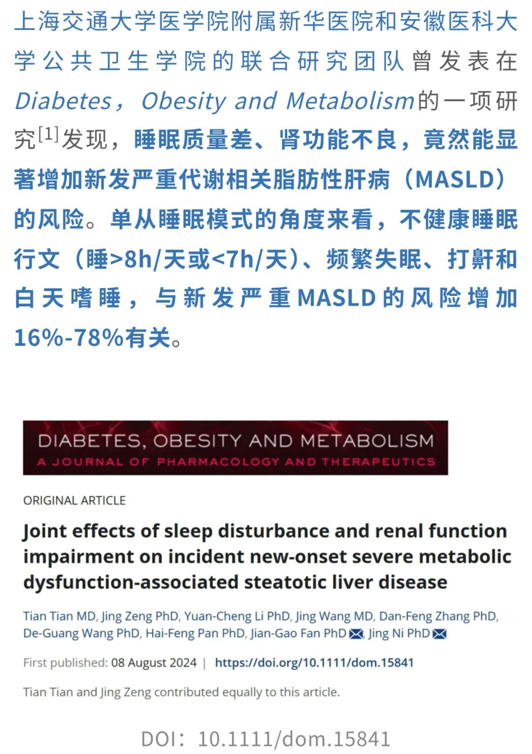 睡得不好,肝脏“扛不住”?不良睡眠、肾功能与MASLD的惊人关联