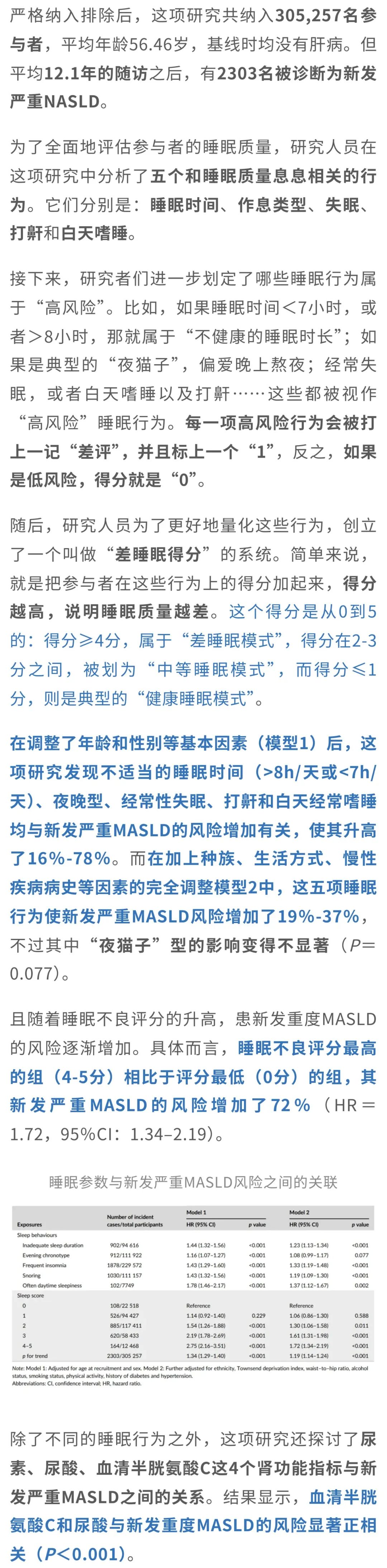 那么,在“不良睡眠加上肾功能不好”的双重打击下,肝脏还能“扛得住”吗?新发严重MASLD的风险会“爆表”吗?