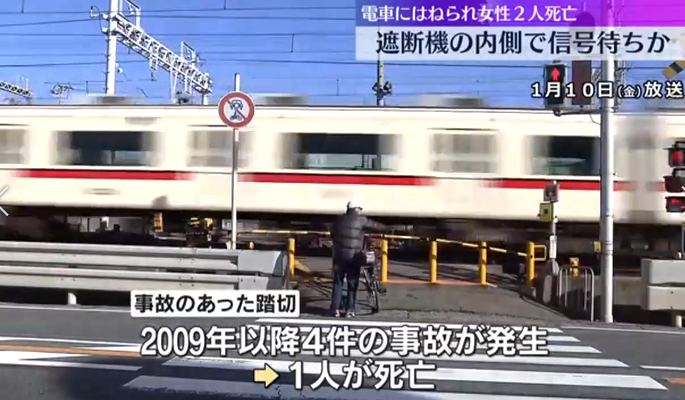 1月9日下午3点50分左右,日本兵库县两名中国女游客在铁路道口等红绿灯时遭列车撞击身亡。一男子发现两名女子重伤倒地后报警,其中一女子当场身亡,另一女子送医后身亡。