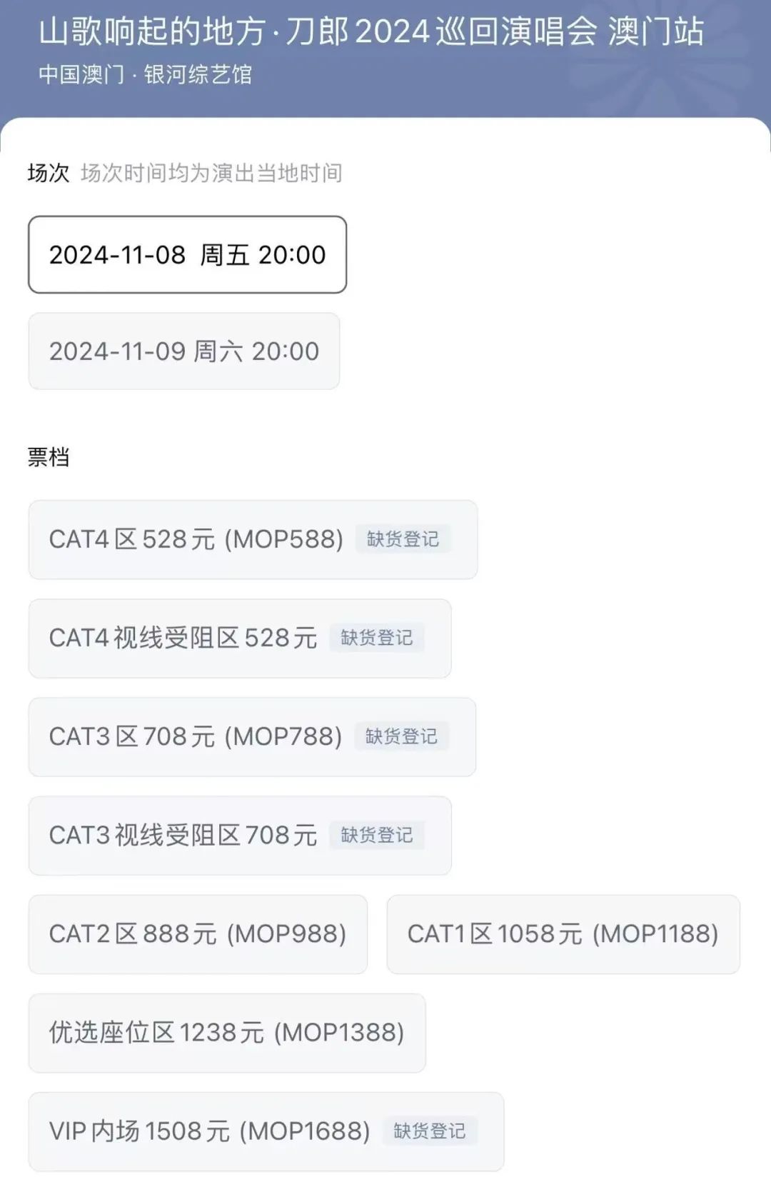 再次打开软件,吕洋发现门票已全部售罄。