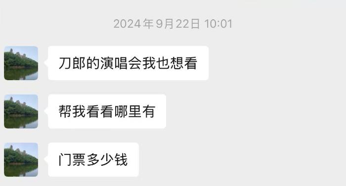 9月初,吕洋收到母亲的微信,让他帮自己抢一张刀郎澳门演唱会的门票。他打开购票软件,发现还有不少余票,便立刻下单2张,几天后,母亲再次发来微信,让他帮大姨也买两张。