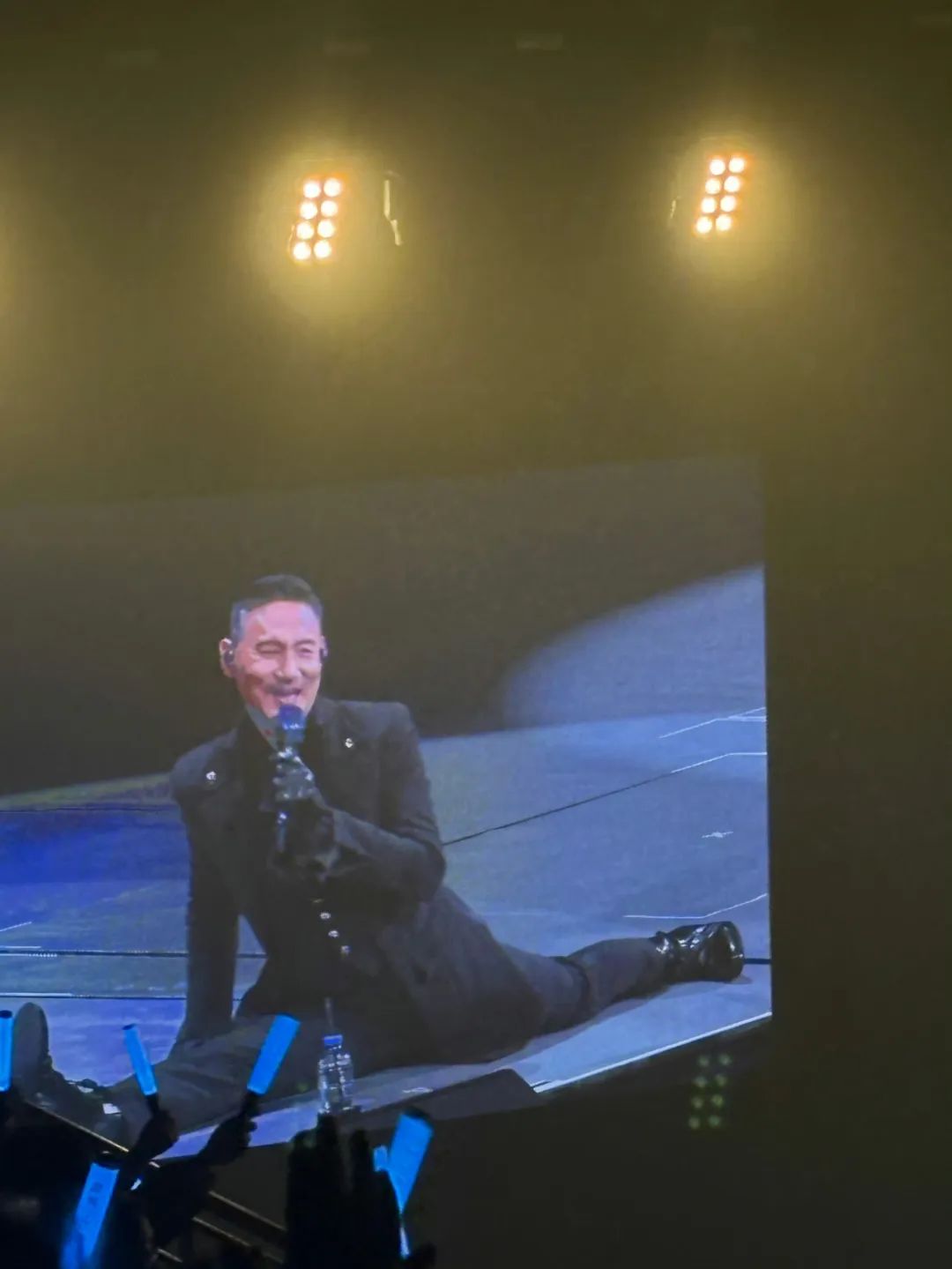 马女士最大的愿望是在现场与张学友的海报合影,开场之前,她站起来准备合影,却被保安制止,称看台第一排不能站人,让她们立刻坐下。