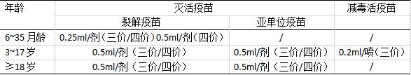 简单来说,6—35月龄的宝宝,选择余地其实不多,只能选择三价或者四价的灭活裂解疫苗。