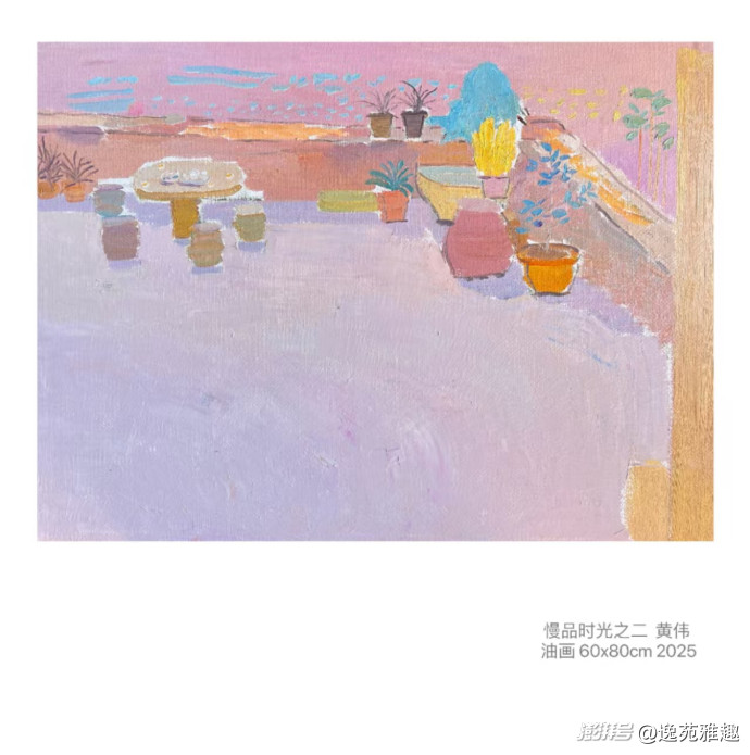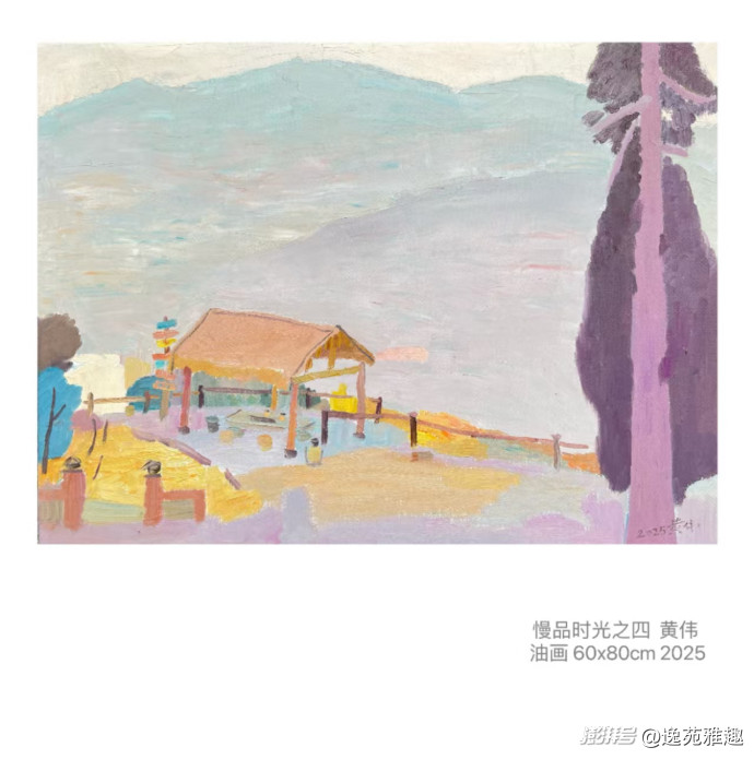 《慢品时光》系列,则是黄伟先生对军营村村民冬日生活的深情刻画。画作中,小桥流水,亭台错落,品茶小桌,漫步小道,画笔落处均是冬日宁静与闲适。黄伟先生的笔触,如同冬日的暖阳,洒落在每一个角落,记录下这份原始而纯粹的生活美好。那画面中的一缕缕炊烟,更是让人感受到了家的温暖和生活的温馨。