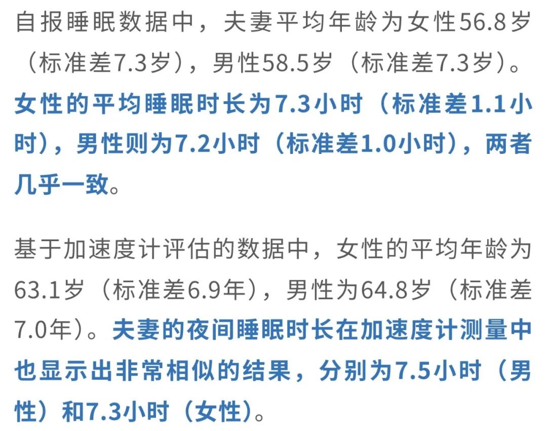 这表明,不管是通过自我报告还是通过加速度计评估,夫妻的睡眠时长并没有显著差异。